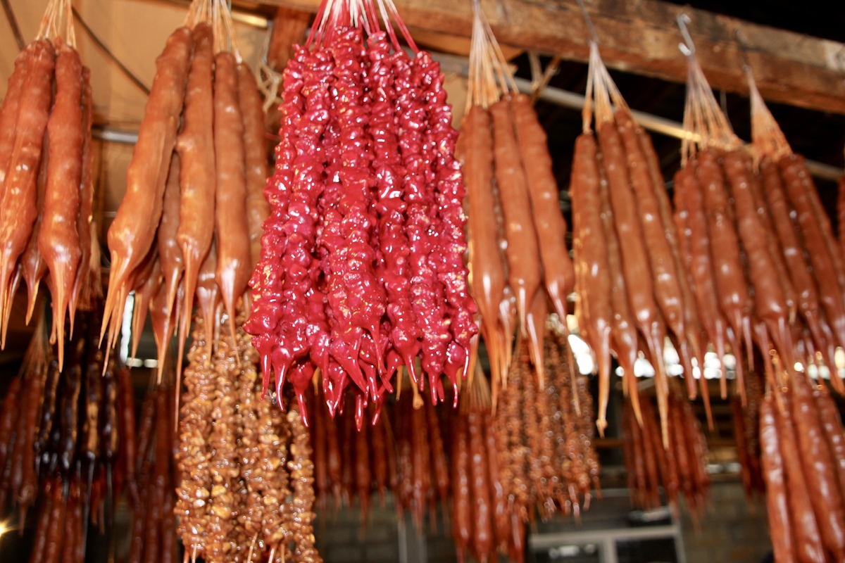 Сходим на местный рынок. Даже если вы ничего не купите, а только посмотрите и понюхаете, то удовольствие все равно получите. Как говорится, если хочешь почувствовать колорит страны, в которой ты находишься, – обязательно посещай местные базары. На Телавском рынке можно купить специи, ароматное подсолнечное масло (я всегда привожу домой), уникальные сыры и, конечно же, знаменитую кахетинскую чурчхелу.