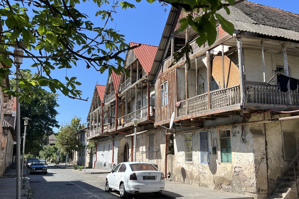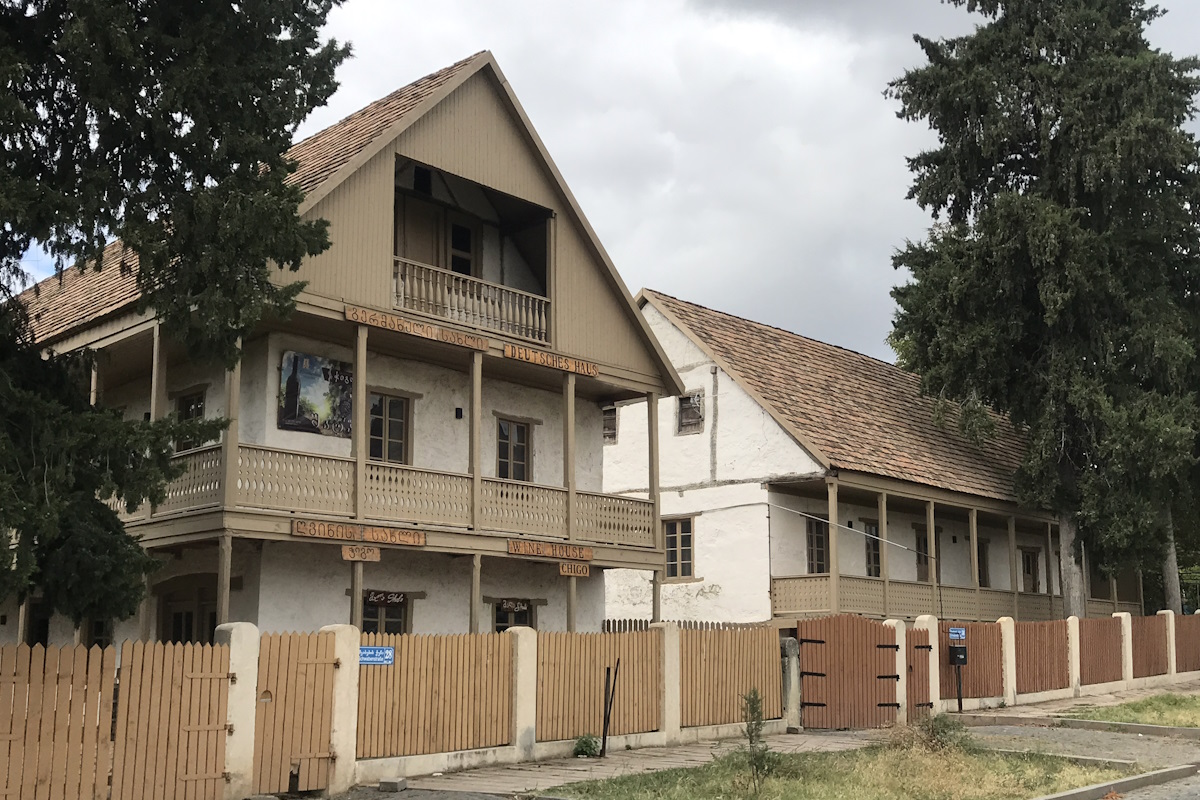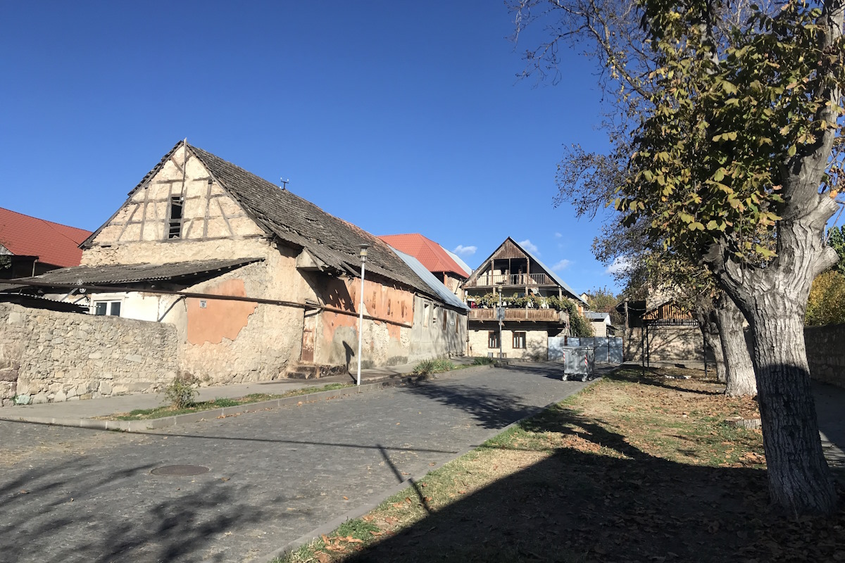 Погуляем по Болниси, вернее – по одному из его кварталов. Это настоящая «Немецкая Грузия»! До сих пор на улочках Катариненфельда стоят жилые каменные дома немцев-швабов, фахверх которых в альянсе с грузинскими деревянными балконами создает впечатление сказочных.